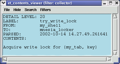 3> et_collector:report_event(Collector, 20, my_shell, mnesia_locker, try_write_lock,