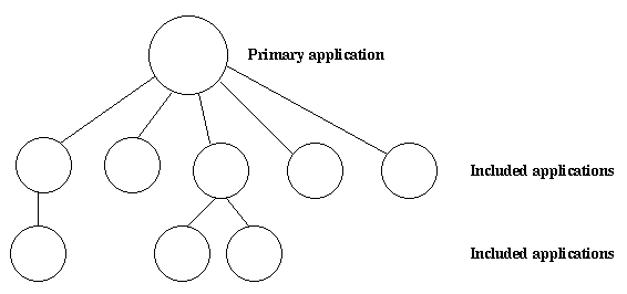 An application can include other applications. An included application has its own application directory and .app file, but it is started as part of the supervisor tree of another application.