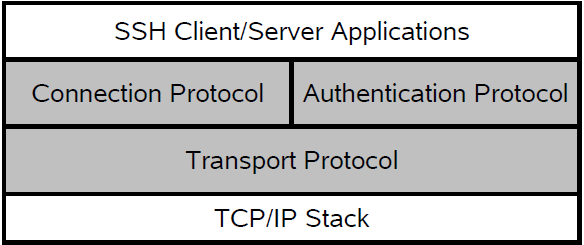 Conceptually, the SSH protocol can be partitioned into four layers: